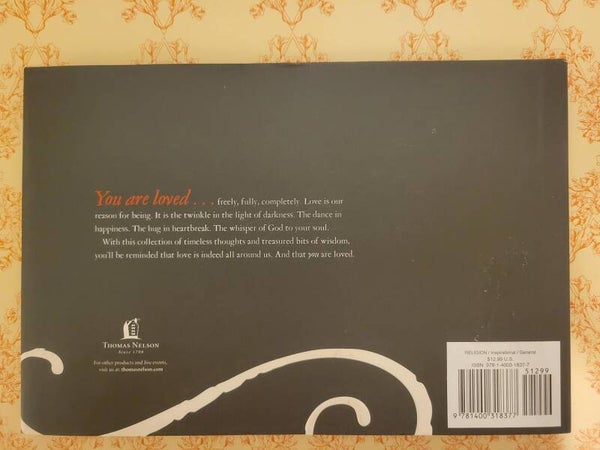 - "You Are Loved" 9.5 x 6.5 "2012" Like New, This book of timeless thoughts and treasured bits of wisdom reminds us that love is indeed all around us if we choose to see and recognize it. Delightful quotes from Jane Austen, Mozart, Mother Teresa and others written by Thomas Nelson.