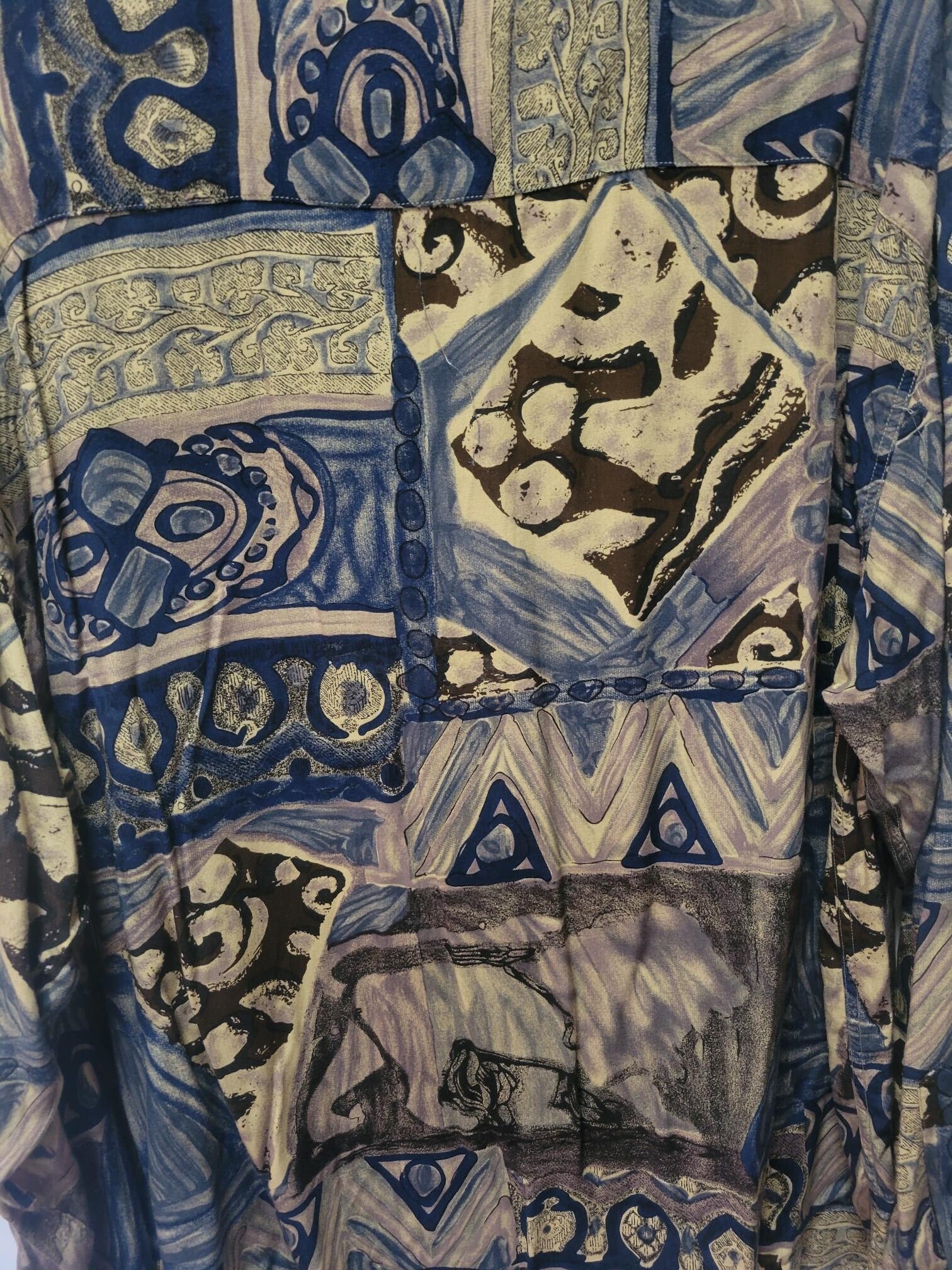 AGGIO Sz. Large Rayon Men's Shirt Abstract Button Up One Pocket All Over Print