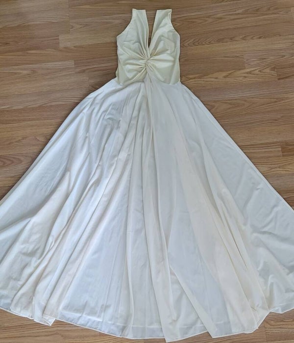 Stretchy Upper Bust 26" -36" Stretch . Total length 51" . Made in U.S.A. . Knoted front . 80% Nylon 20" Elastaine . Peachy - Ivory Color . Beautiful Piece