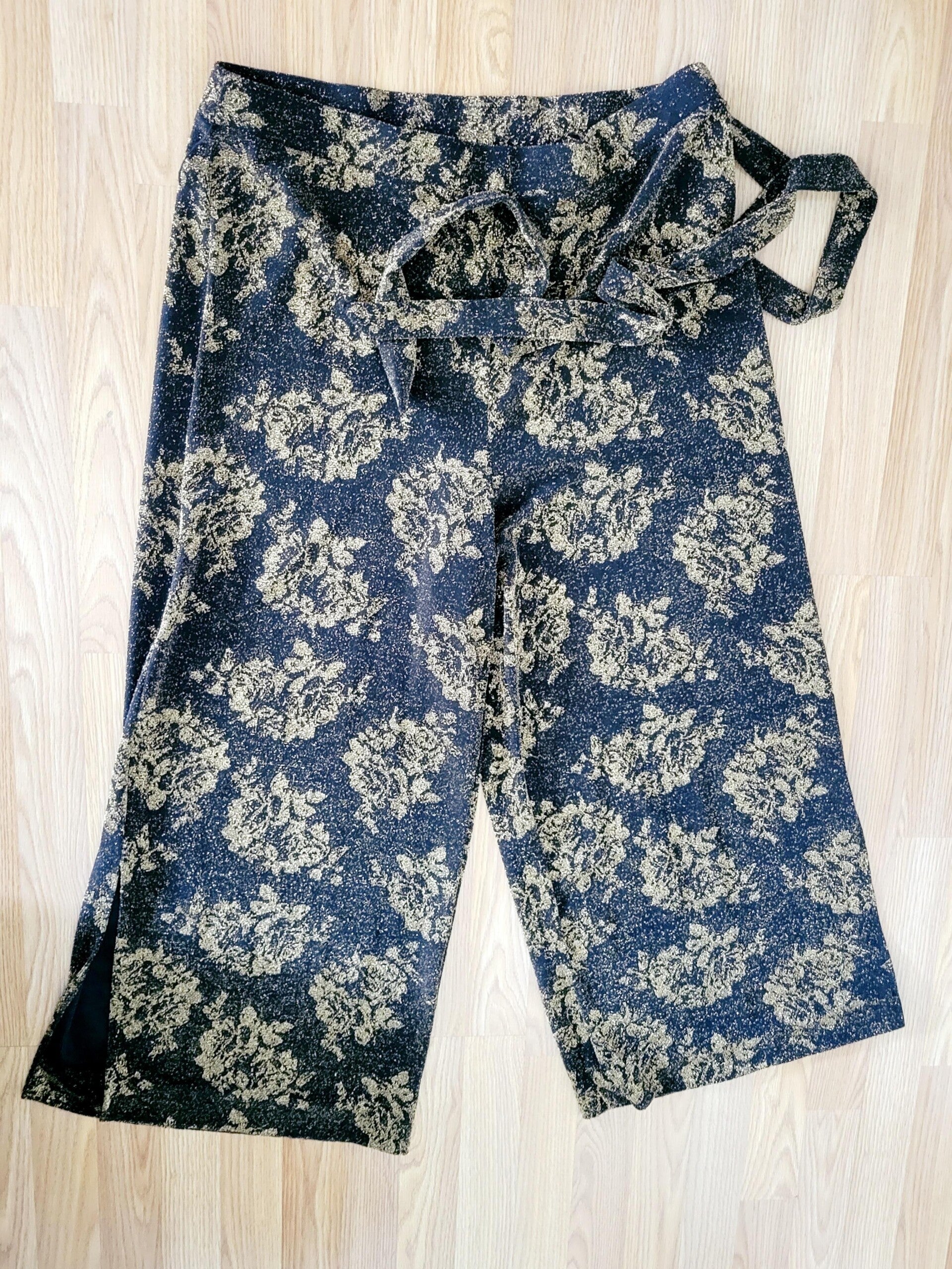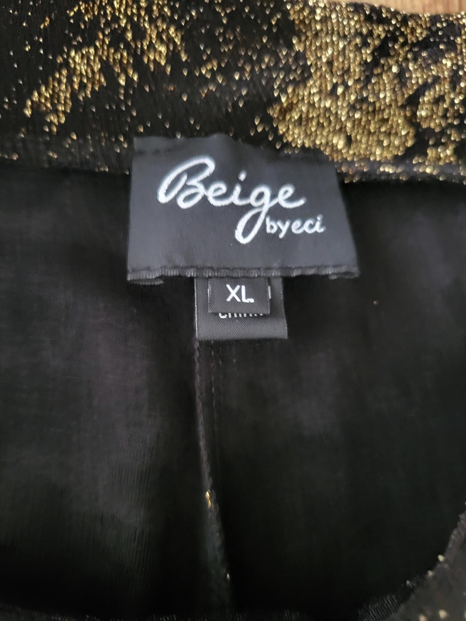 Slinky Black/Gold Sparkly Pants Wide Legs Beige by Eci / Belt Sz. XL
