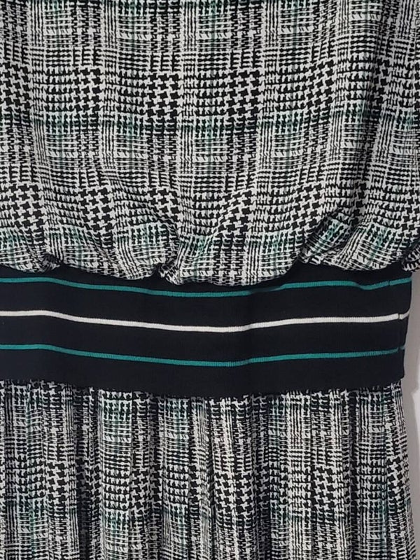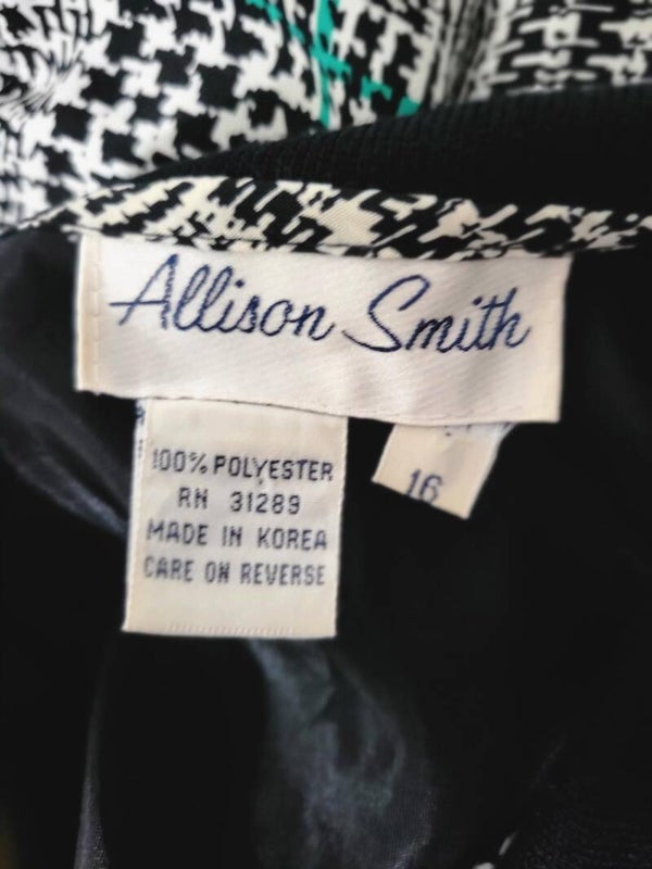 Vtg. Sz. 16 Poly Pleated 1 Pc. Dress Padded Shoulders by Allison Smith