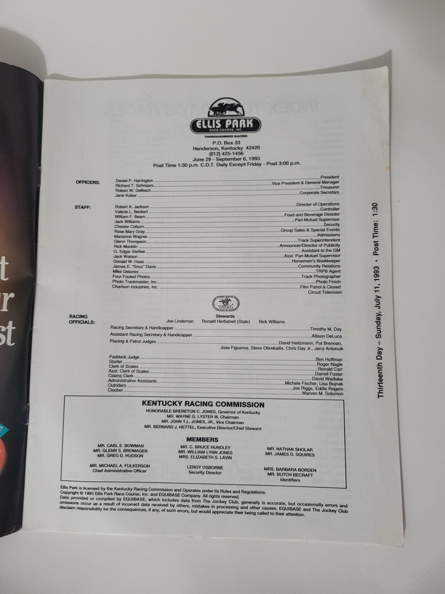 " 1993 " Ellis Park Thoroughbred Racing Program Book / June 29th thru Sept. 6 / Souvenir