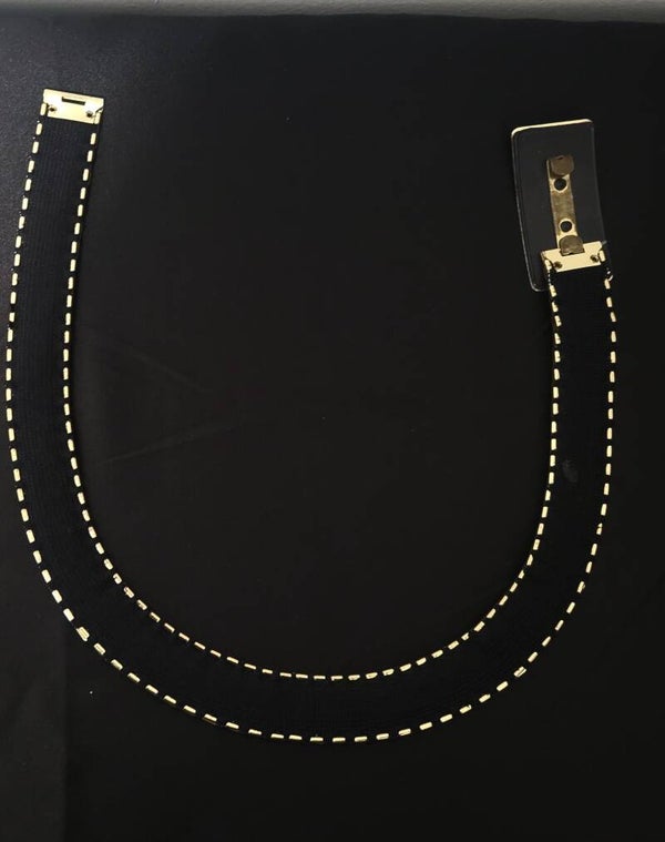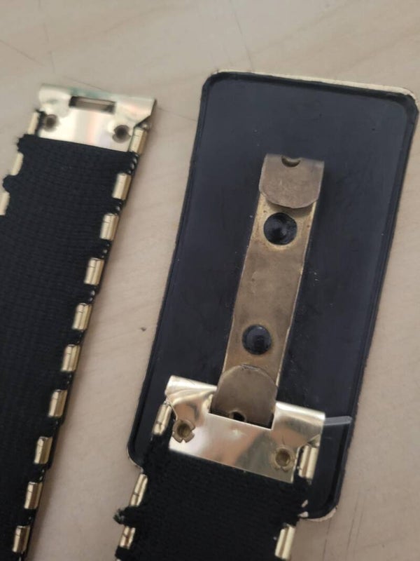 . 26" - 40" stretch . Made of cloth / metal . Scrached up . Hook Closure