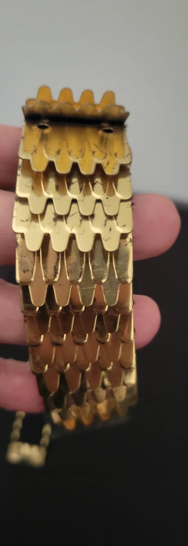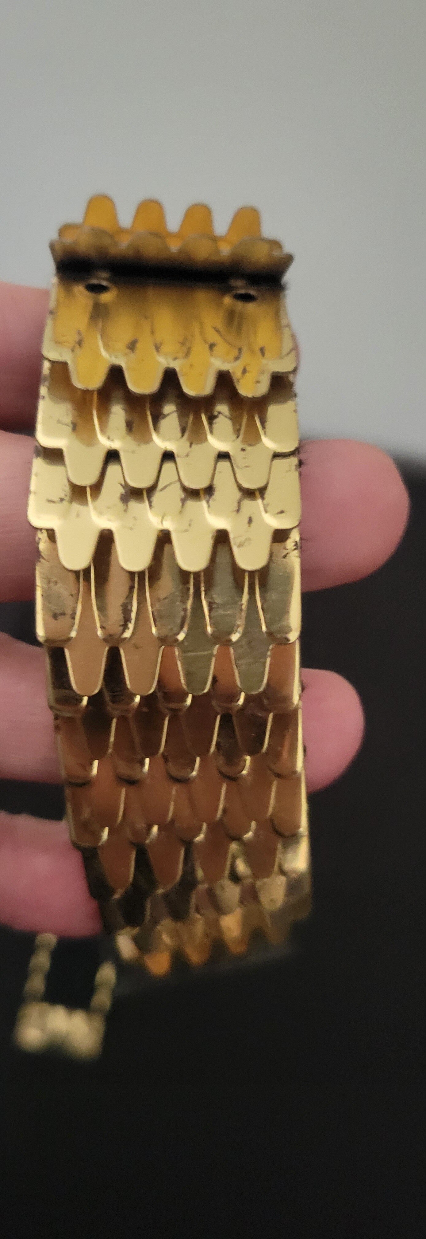 1980's Gold Tone Metal Fish Scale Belt Disco & Glam